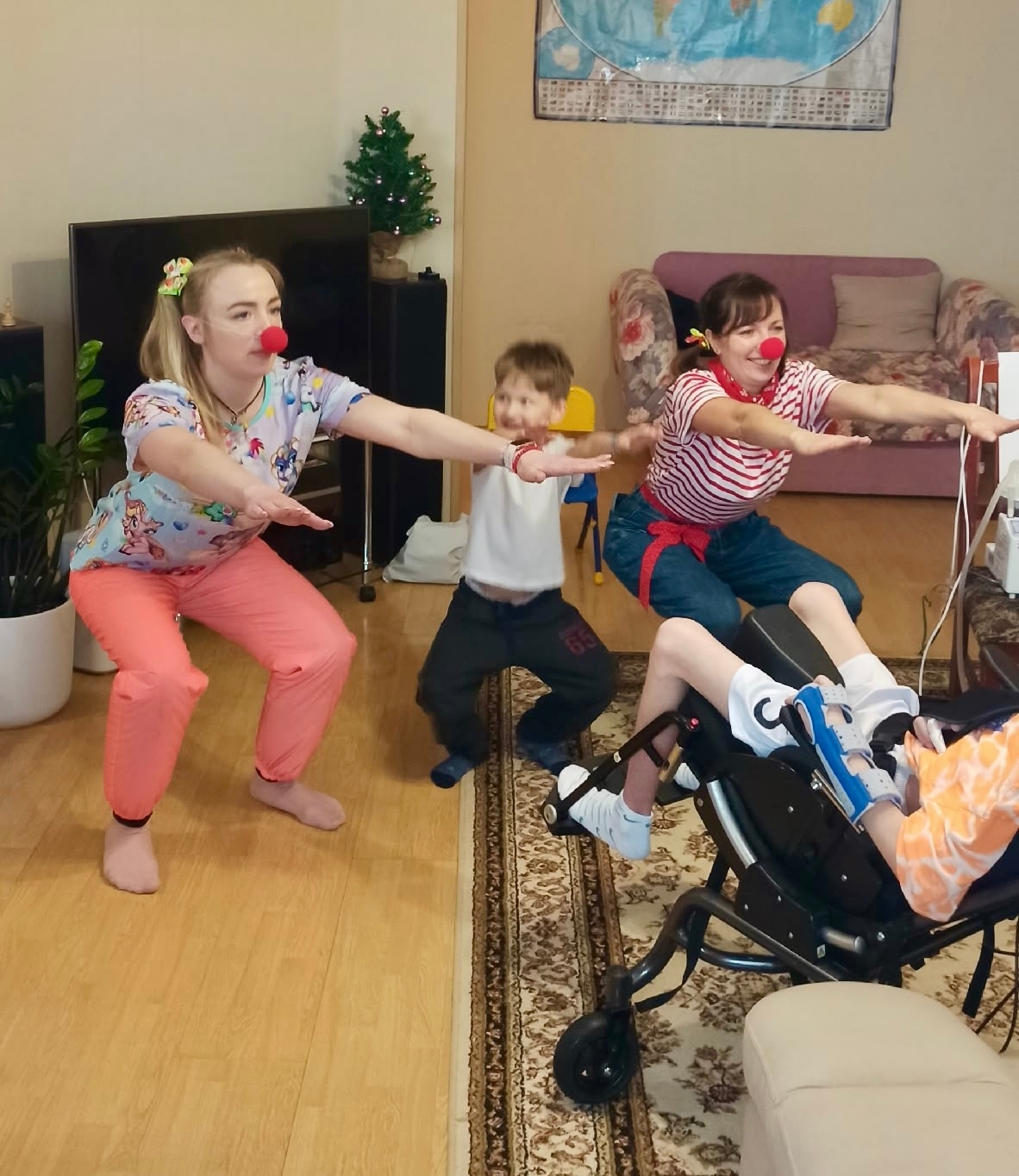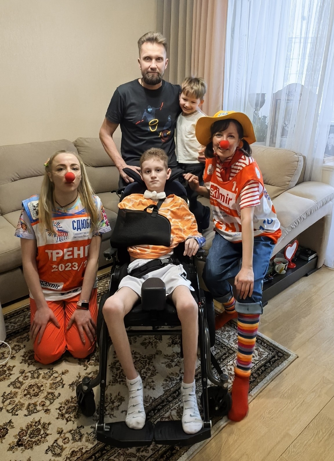 Клоуны поблагодарили семью за приветливость и пожелали Севе здоровья и сил для дальнейшей реабилитации и восстановления.