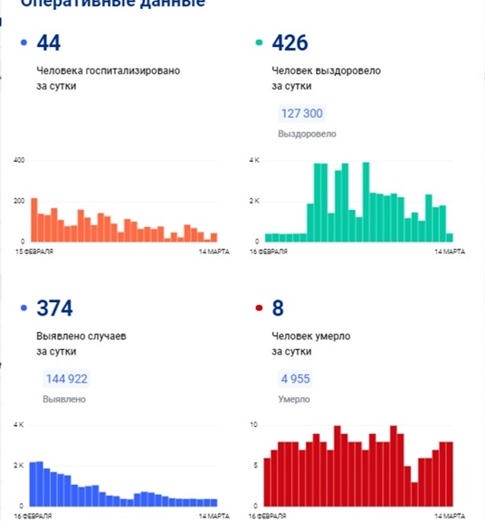14 марта в Тульской области сообщили о 374 новых случаях заболевания коронавирусом. При этом 44 пациента были госпитализированы.